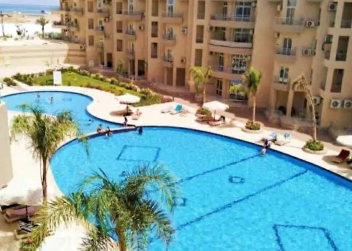 La Playa del Sindbad Club Beach Resort se encuentra a una distancia de 2 km del apartamento. El Sunrise Luxury Apartment está situado a poco más de 10 minutos en coche del Gran Acuario de Hurghada.